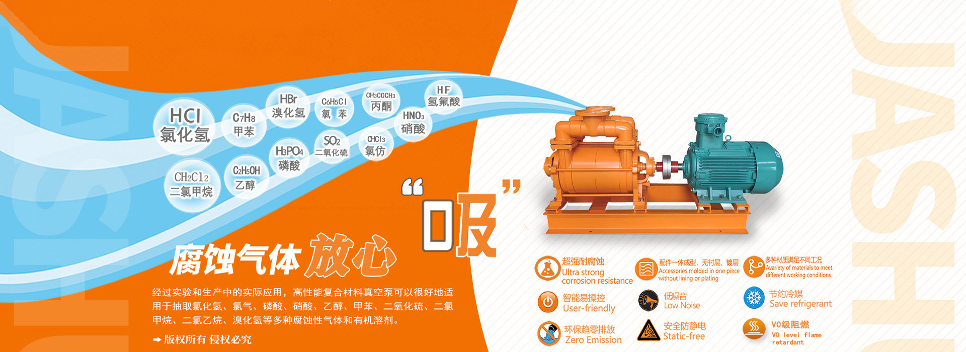 公司獨立研發(fā)的具有自主知識產(chǎn)權(quán)的多項專利產(chǎn)品 一耐腐蝕系列水環(huán)式真空泵。